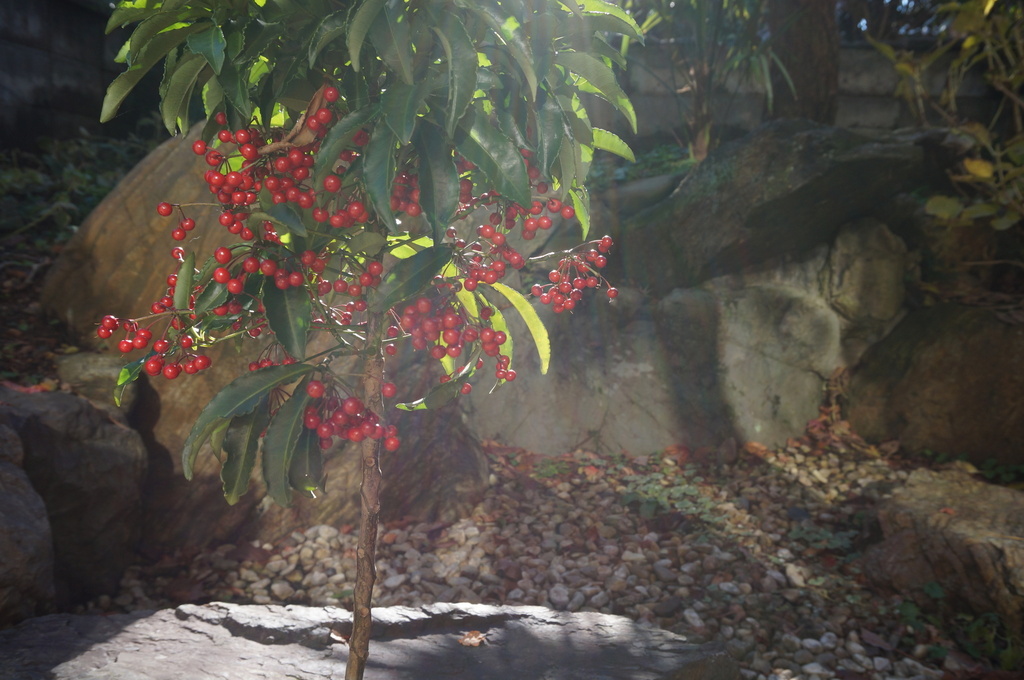 中庭の万両も実を赤くしています。