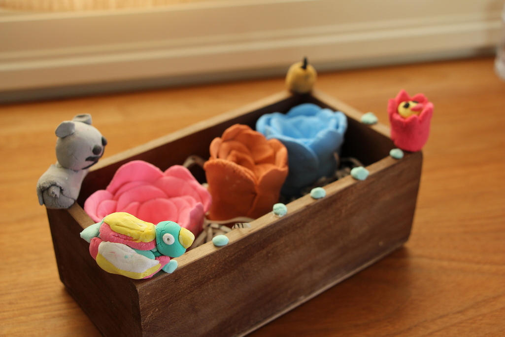 とても嬉しくて♡ 今、紙粘土工作のTVが人気みたいです。 こんなに色もカタチもきれいにそしてとても小さい小鳥にハマりました。(白い紙粘土に絵の具で色をつけるんですって。) みりちゃん、はるかちゃん素敵なバラをありがとう!
