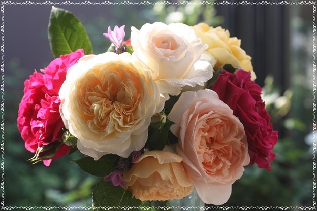 庭のバラで作った母の日の花束です。