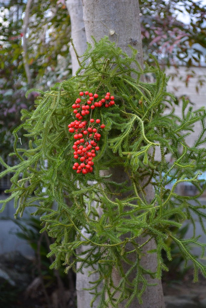 森で見つけたヒカゲノカズラと庭の南天の実。
