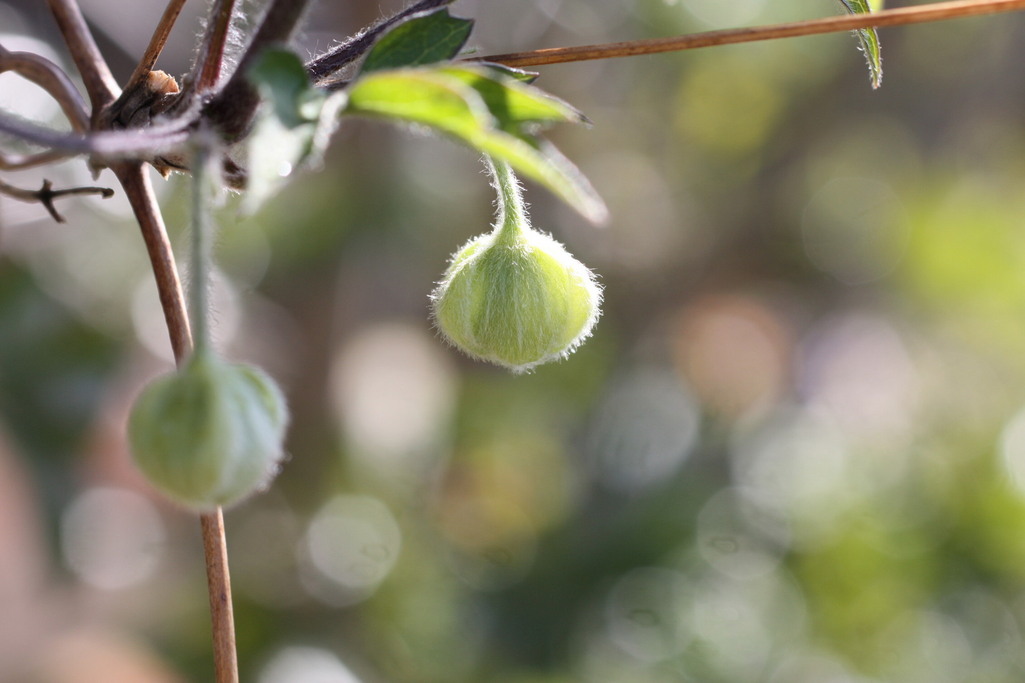 つぼみもコロンと丸いハンショウヅル、3年目で大きくなりました。