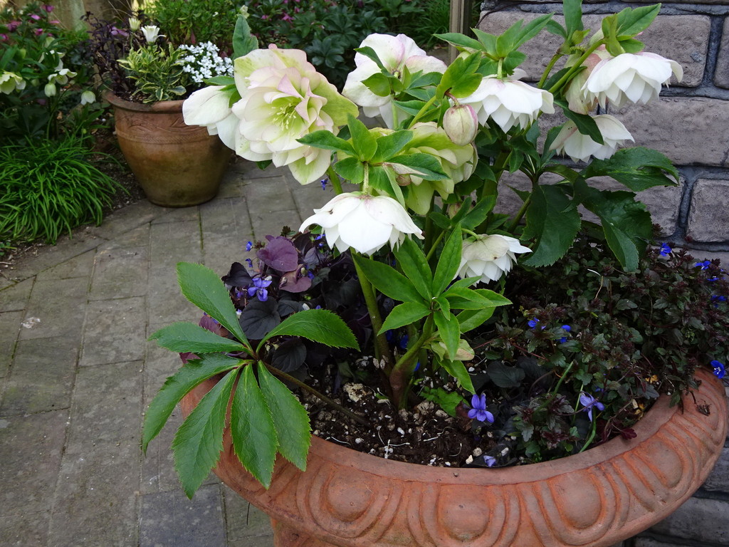 クリスマスローズの季節♪お気に入りはコンテナで。足元にはベロニカオックスフォードやビオララブラドリカ。