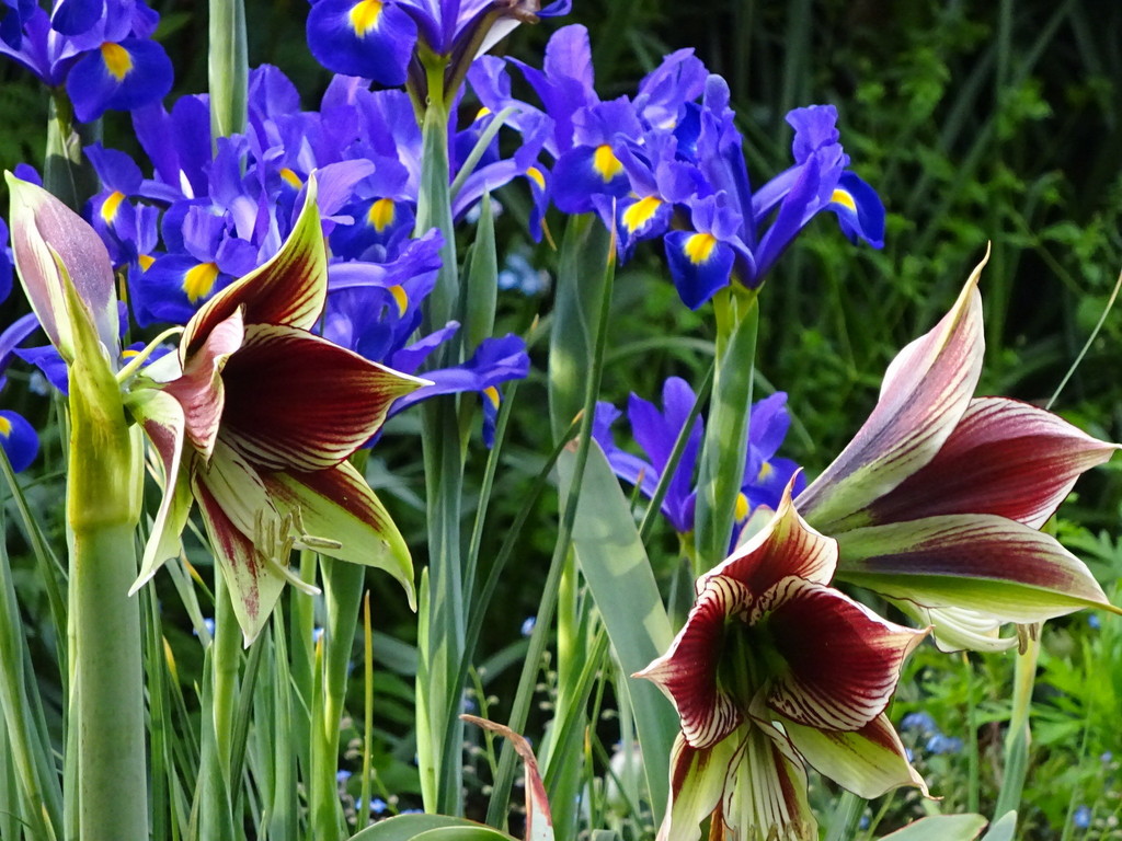 アマリリスパピリオ・・蝶のような花びらと臙脂のスジスジがとても魅力的な原種アマリリス。