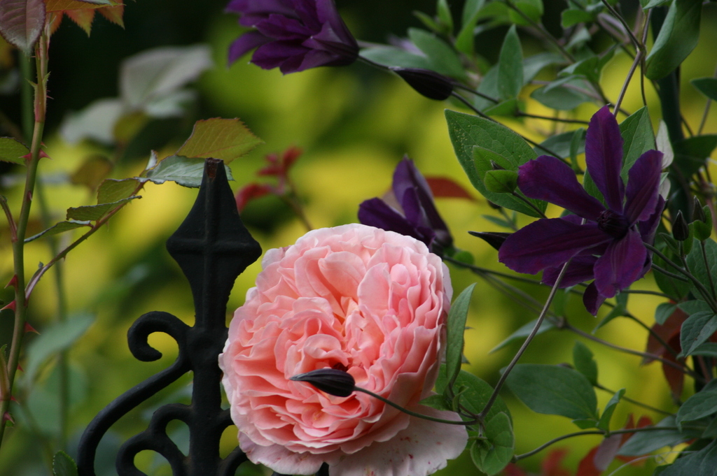 アブラハムダービーとクレマチス・アフロディーテエレガフミナ