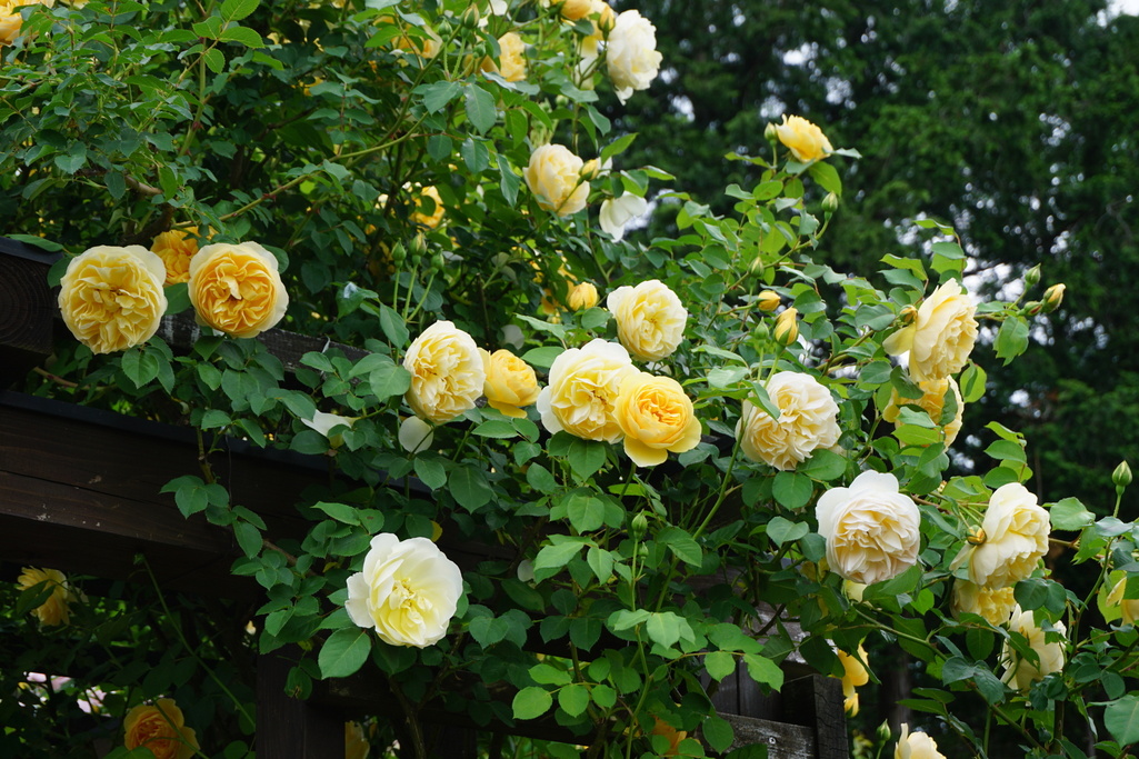 パーゴラ上部のグラハムトーマス