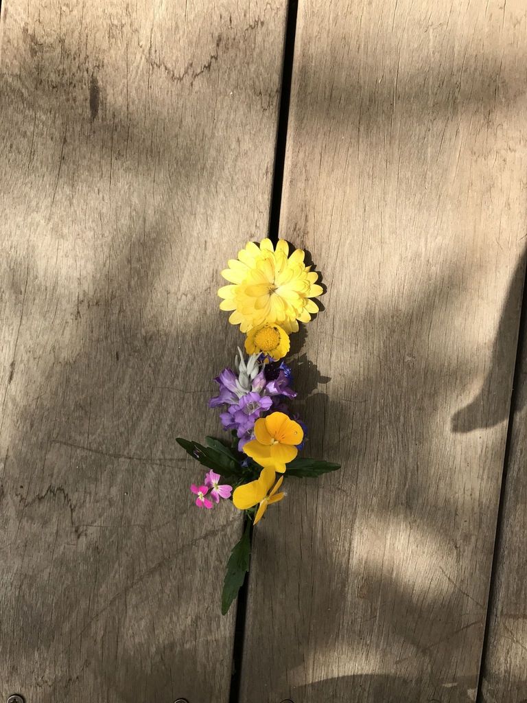 孫娘が摘んだお花をデッキの床に飾ってくれました。
