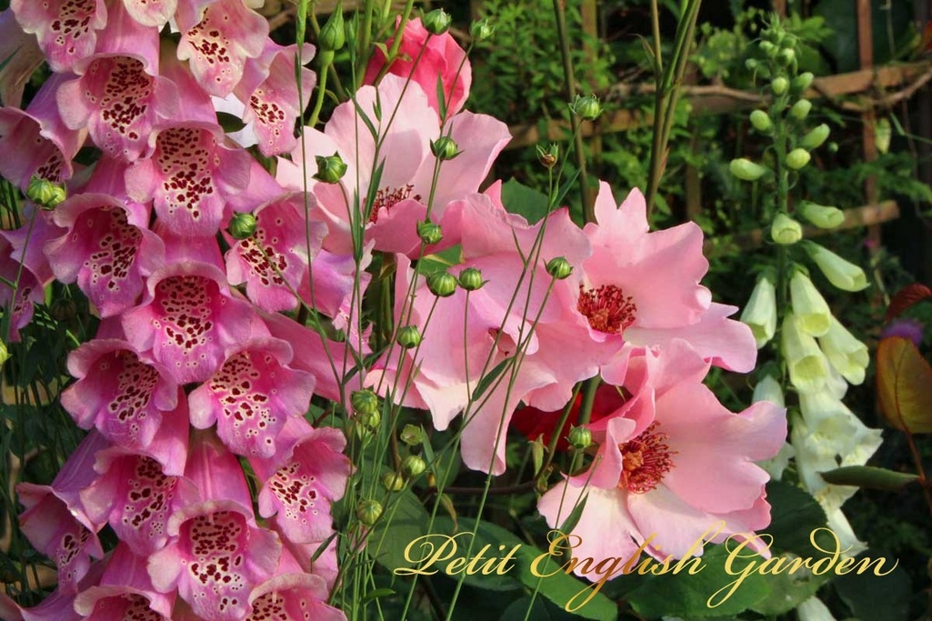 ピンクのバラ デンティーベスと、ジギタリスプルプレア