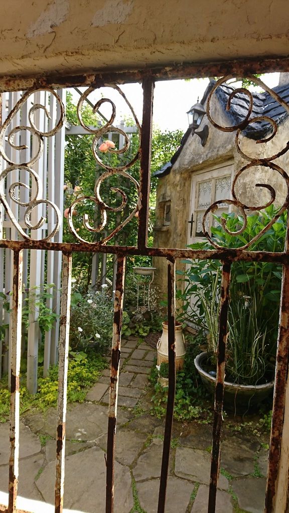 紫陽花,つるバラ,パーゴラ,ガーデンシェッド,アイアンフェンス