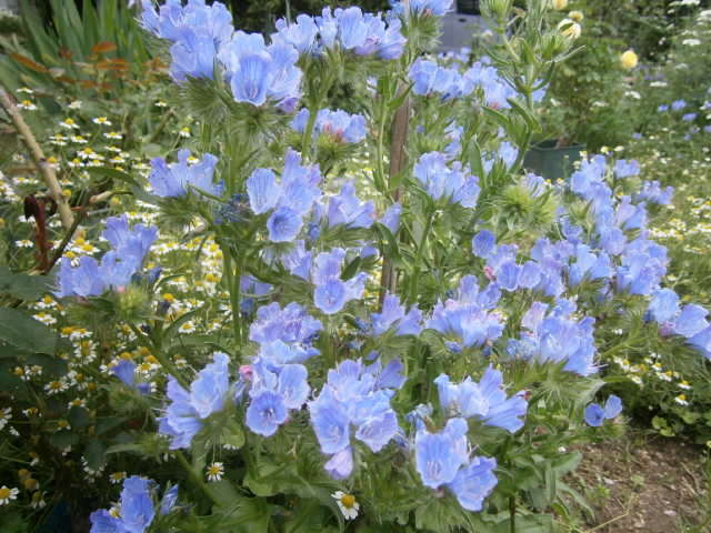 ブルーにこだわった2017年春。エキウムは、文句なしのブルー。目立ちます。昨年の種から育てました。丈夫で霜にも強い。イングリッシュガーデンにはもってこいだと思います。背丈は80センチくらい。支えをしないと横に這って4,50センチくらいの高さに。
