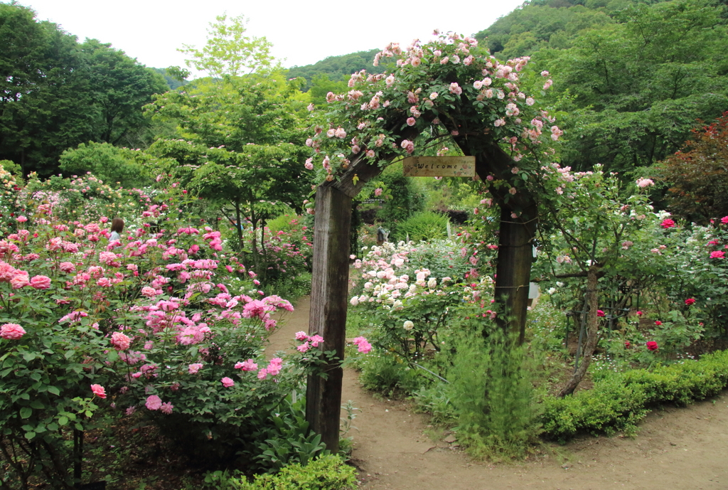 早朝のばら園ですか。オーソドックスで,安らげるシーンですね。
