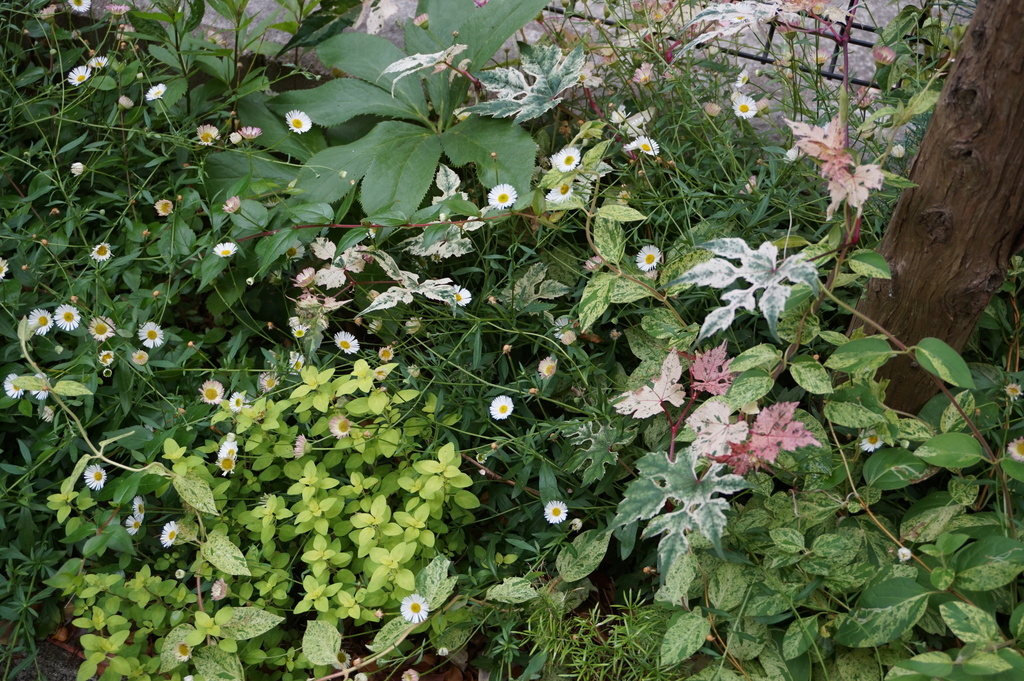 いろいろな葉がとりどりに伸びてグラデーションを作っています。