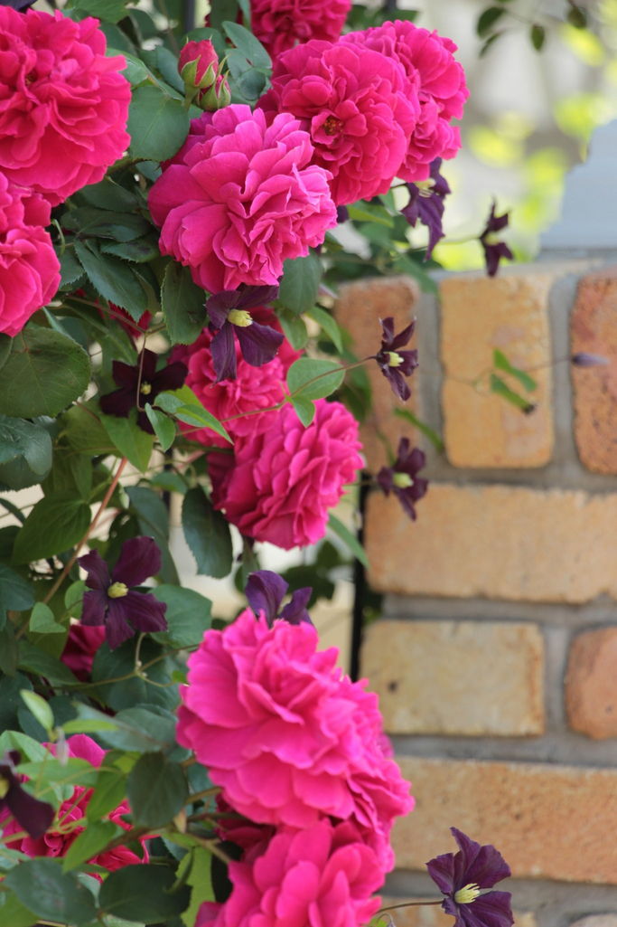 とても、おしゃれな、色の組み合わせですね、クレマチスのシックな色がアクセントに素敵ですね。