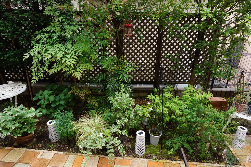 グリーンだけのお庭も爽やかで好きです(*^^*) 様々な葉っぱの緑とグラスの表情が夏の暑さを和らげてくれますね♡