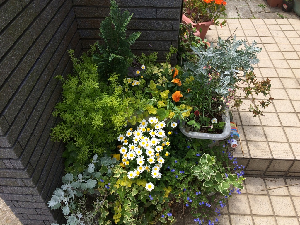 ノースポール、パンジー、青花
