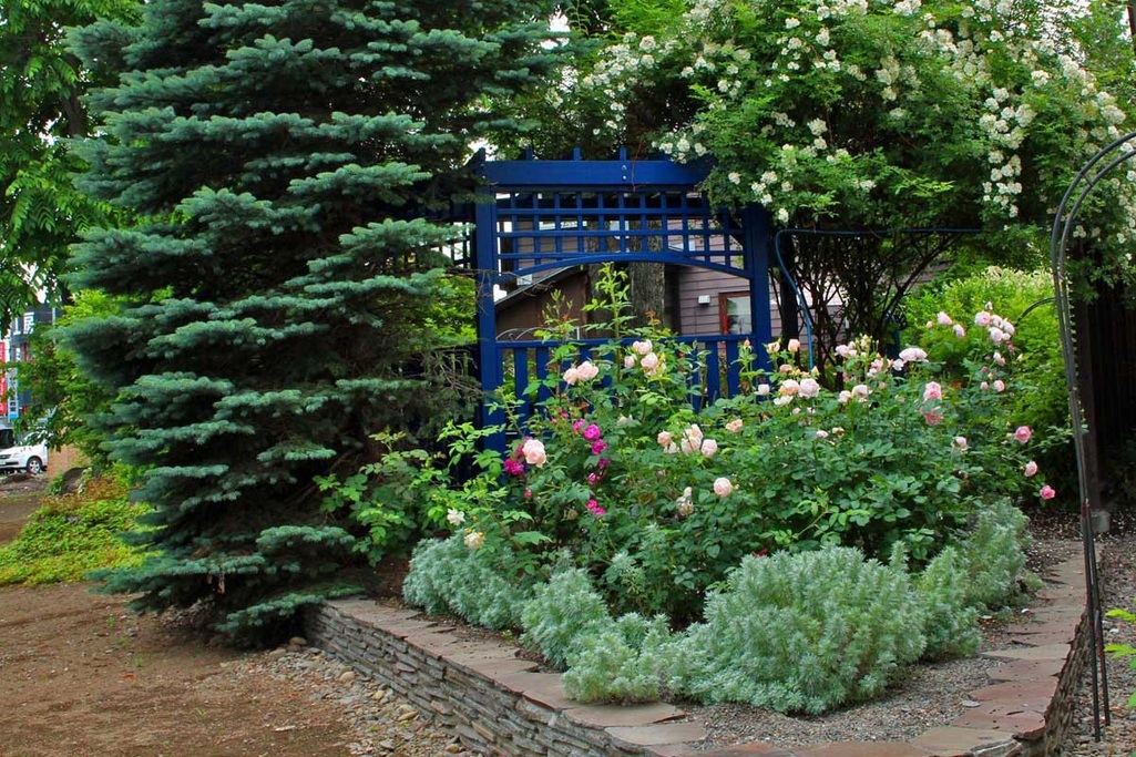 コニファーとブルーのトレリス、ホントに素敵ですネ! 爽やかでとってもいい感じ♡