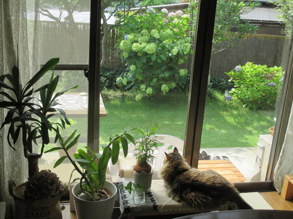 猫ちゃんも素敵なお庭を眺められて幸せですね!