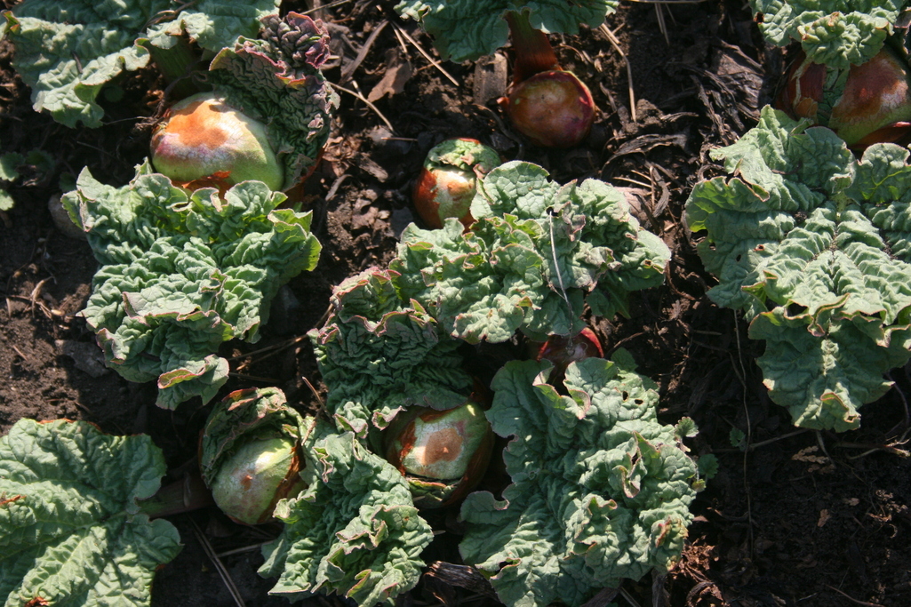 畠に草むしりに行ったら・・ルバーブが可愛いくまん丸く顔だしてた・・「待っていたんだぞ~♪」ってきれいにしてあげた・・でっかく育ててジャムにしちゃうぞ★