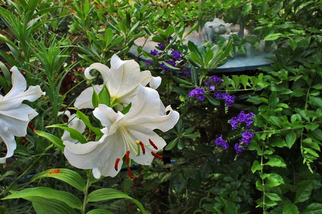 紫のお花の名前を知りたかったんです。デュランタっていうのですね!カサブランカ大好きなお花です。私も挑戦してみようかしら。