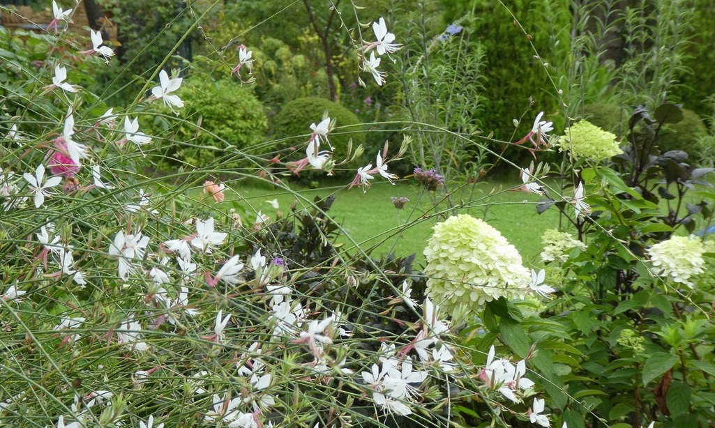 ノリウツギ、ボリュームがあって羨ましいです☆ガウラも良く咲いていますね!芝生も青々としていてどの植物も元気ですね!