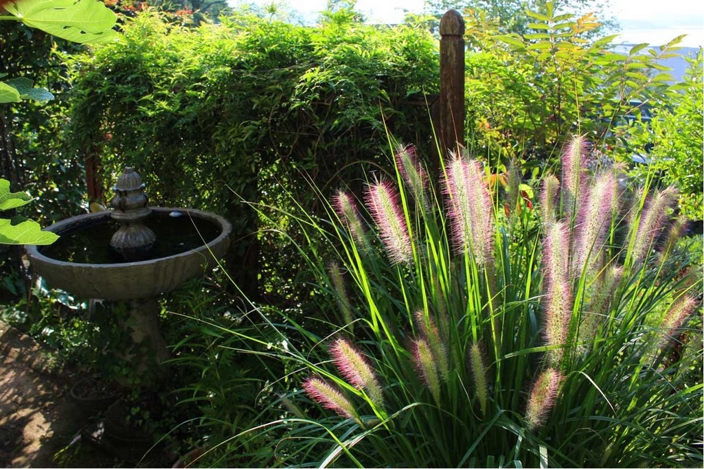 夏の光に輝くペニセタム、とっても素敵なシーンです!夏のこんなシーンが大好きです!PIROTさんの植物のチョイスカッコイイ!