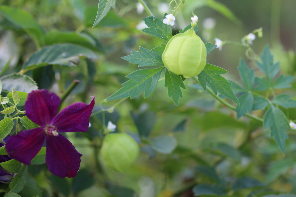 フウセンカズラのくるくるしたツルも可愛いですね♡紫とライムグリーンの組み合わせいいですね。