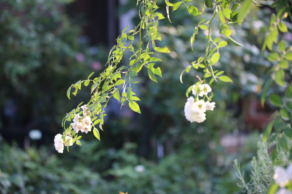 しだれた白い素敵なバラですね。