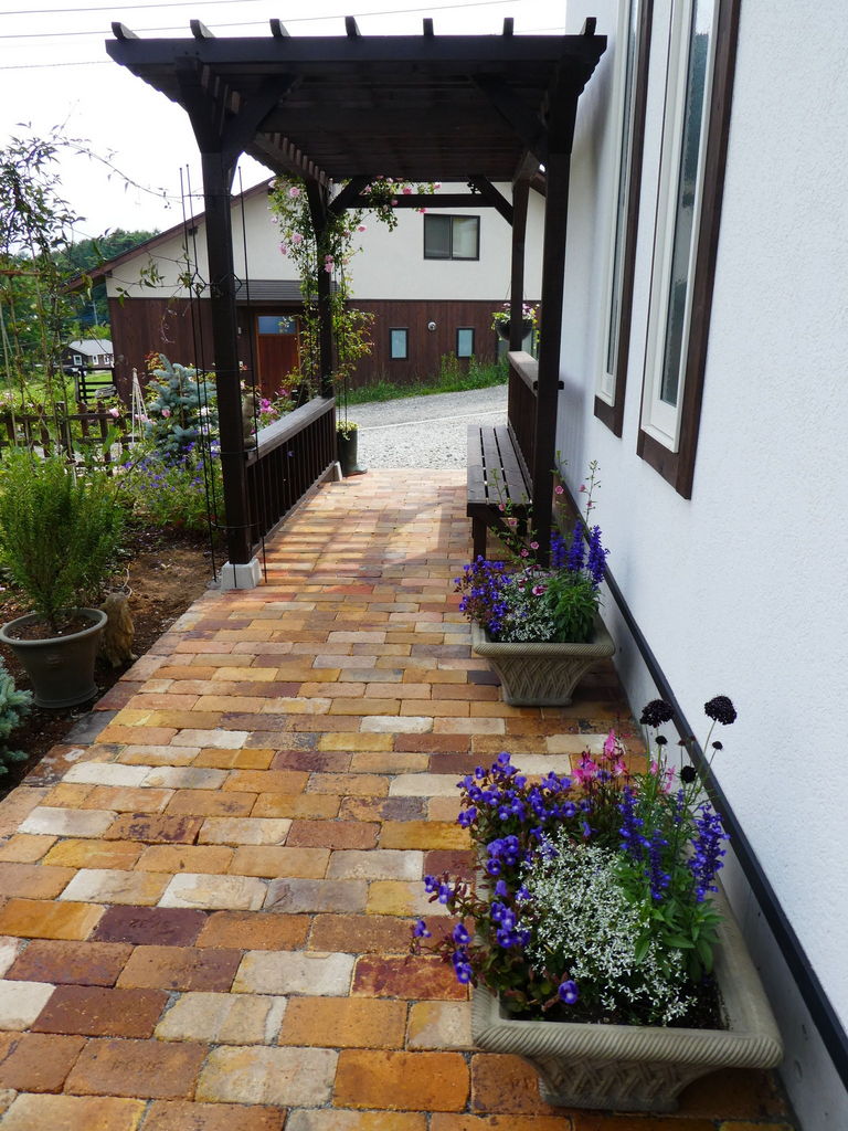玄関までのアプローチにパーゴラが完成。
