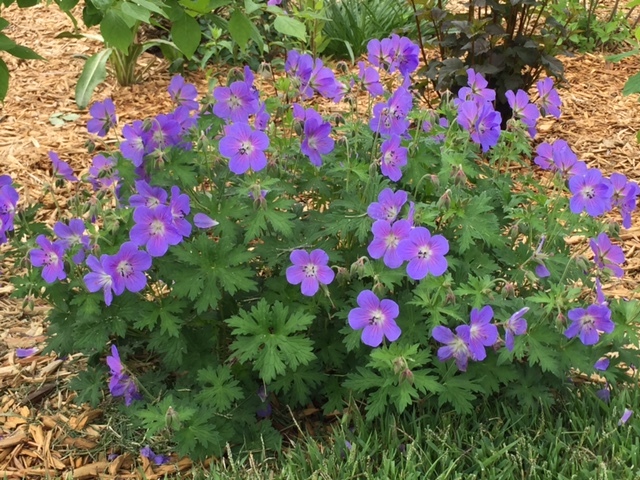 次に咲いたのはゲラニウム・ブルックサイト。 きれいなブルーが緑に映えてとても美しいです。