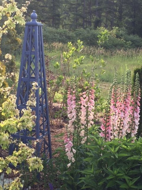 私の所でもこの春にこのジギダリスが咲いていました。可愛い色です。オベリスクはリブさんのでしょうか?私もこのタイプのが欲しいです。