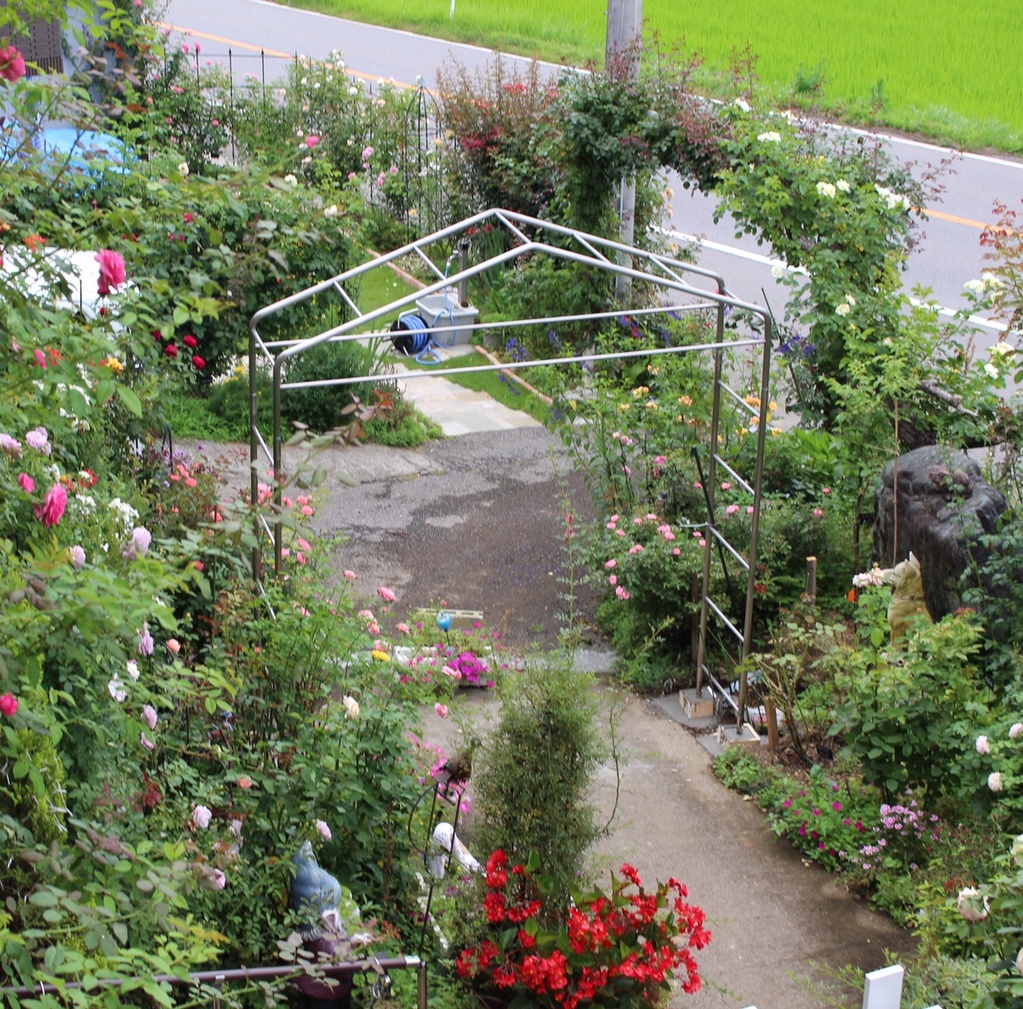 立派なアーチ、自作でしょうか。ここにも素敵なバラが咲くのでしょうね。