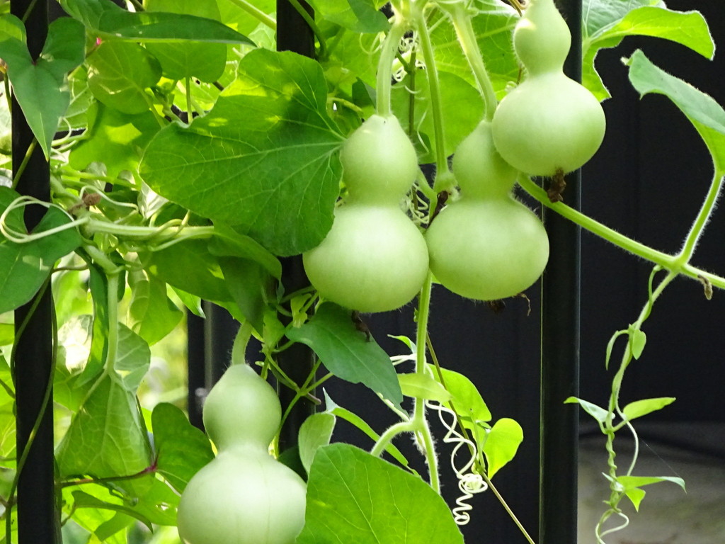 ヒョウタン4兄弟(笑)庭はジャングル状態ですがヒョウタン君頑張っています。ユーモラスな形はまわりを笑顔にしてくれます。