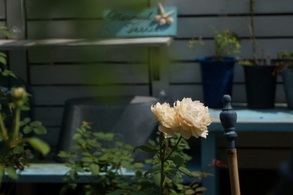 夏の薔薇の剪定はとっても難しいですね。タイミングがわからず、次々咲いてくれれば 蕾も惜しいけれど、カットしてお部屋でなるべく楽しみたいけれど・・・お外でも可憐で咲かせてあげたい! 外の暑さの中、朝一番挨拶したくなりますね。