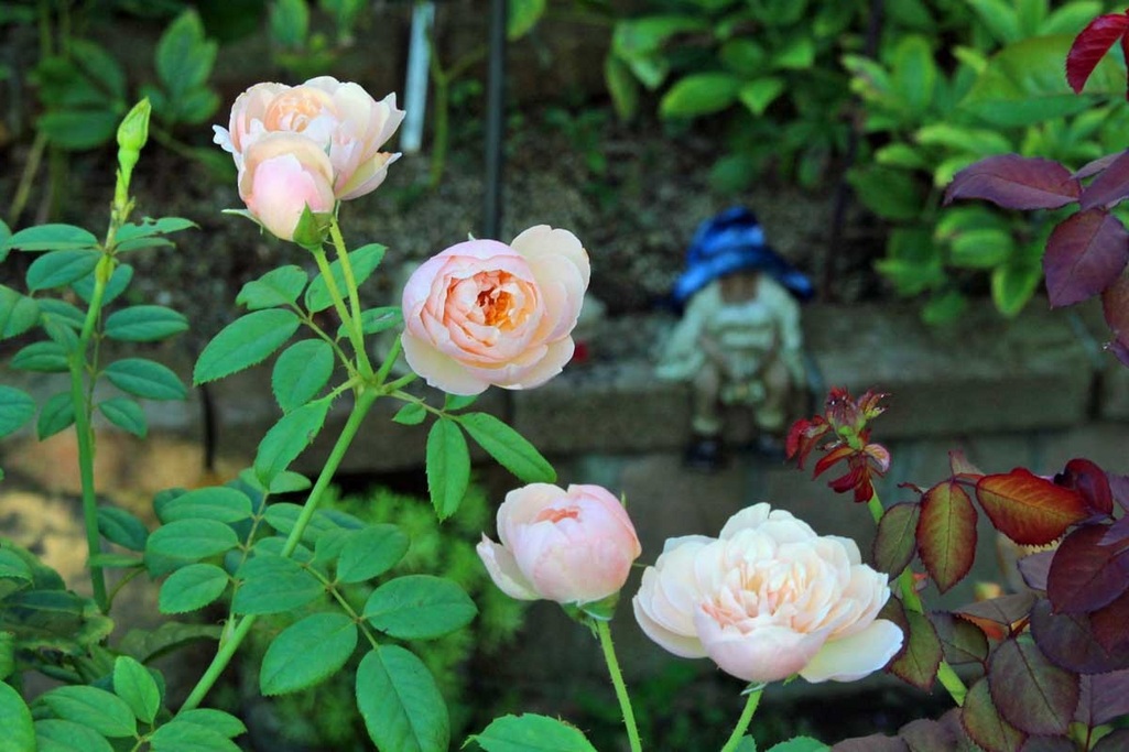 10年前にはな阿蘇美で出会って育て続けているザ・シェパーデス・・コーンウォールで出会った庭の守り神のピスキーを背景に