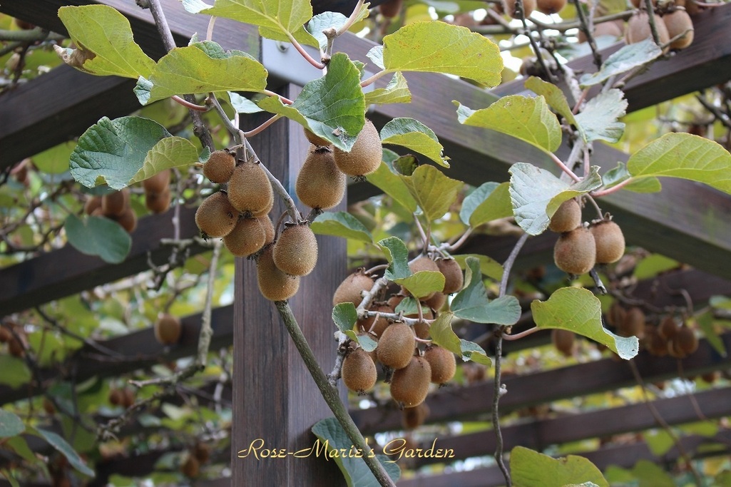 いいですね。キュウイフルーツに立派な棚!我が家はとても写真には納められないわ 台風被害ないこと祈ります。