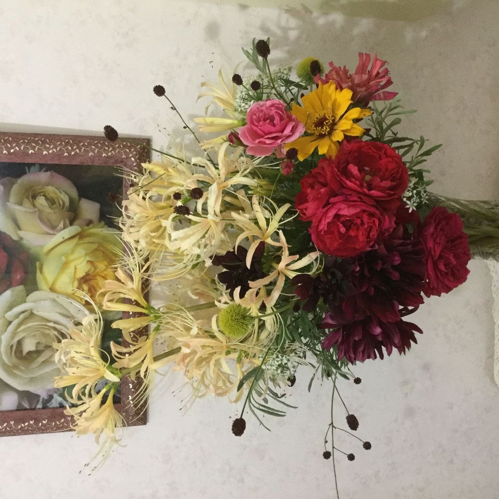 壁の絵も背景に入れる技ありアレジメントなんて、さすがですね。素敵な秋日和
