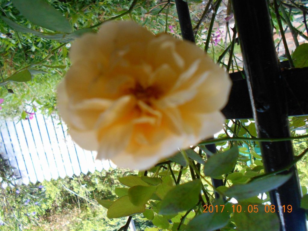 残念!少しボケちゃったわ そう、彼の名前、本を読んで、モグラ脅しに瓶を地面に差し込みました。トーマスと仲良く咲いてくれるようにオベリスクを用意