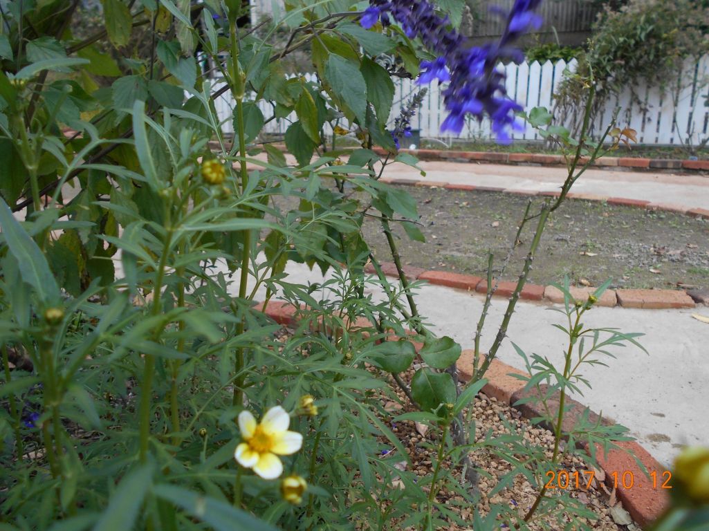 ウインターコスモスがやっと開花、来春にはもう一度芝を植えこみメインガーデンをと・・・・