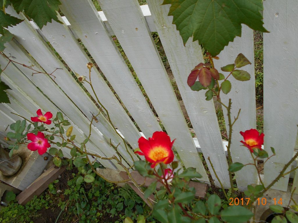 この場所を赤い薔薇でまとめたいわ まだ、鉢植えですが、冬には地植えで場所を決めてあげましょうね
