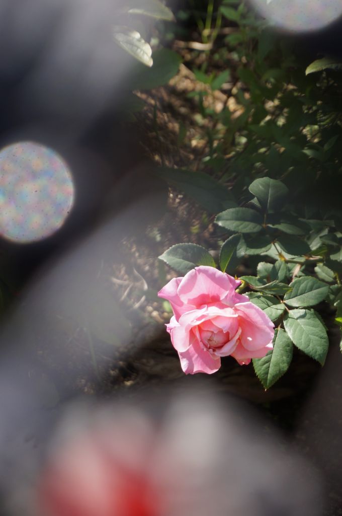 雨上がりにバラが開いてきました。夏とは違う色で・・・