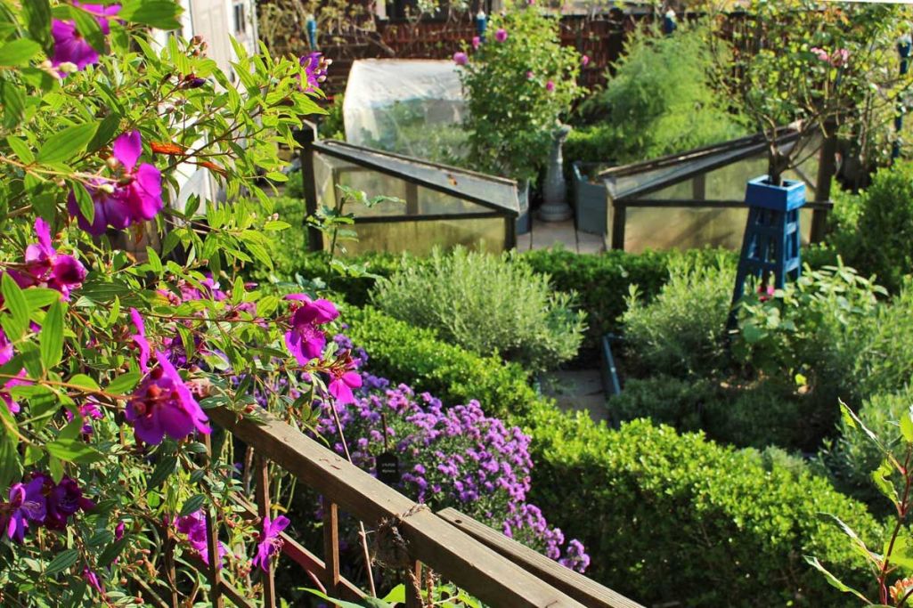 ポタジェの横でノボタンがたくさん咲き始めています。