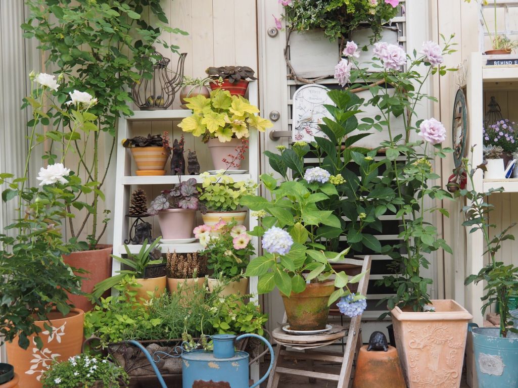 お庭へ行くまでのインターバルに、こんな素敵なコーナーがあったら、いつまでも、庭仕事ができますね。