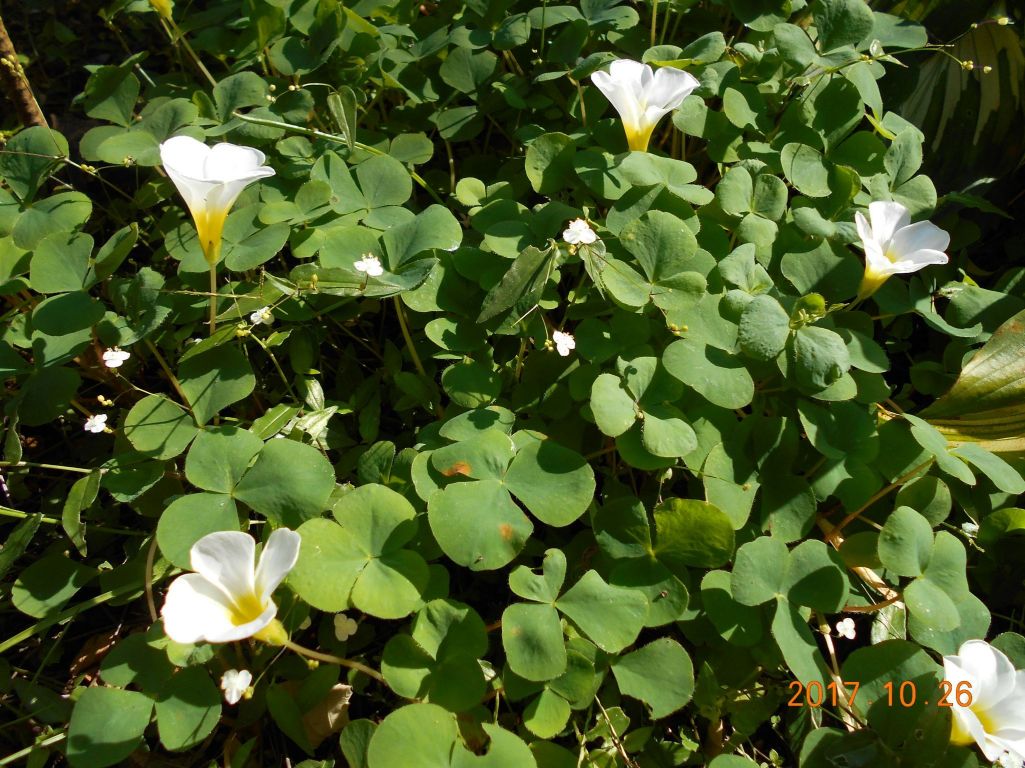 冬の間ずっと緑の葉と白い花が庭を明るくしてくれるオキザリス、我が家でもスモモの木の下で今咲いています。ただ、冬は曇りの日が多いため花が閉じているときが多いのがこちらでは残念です。