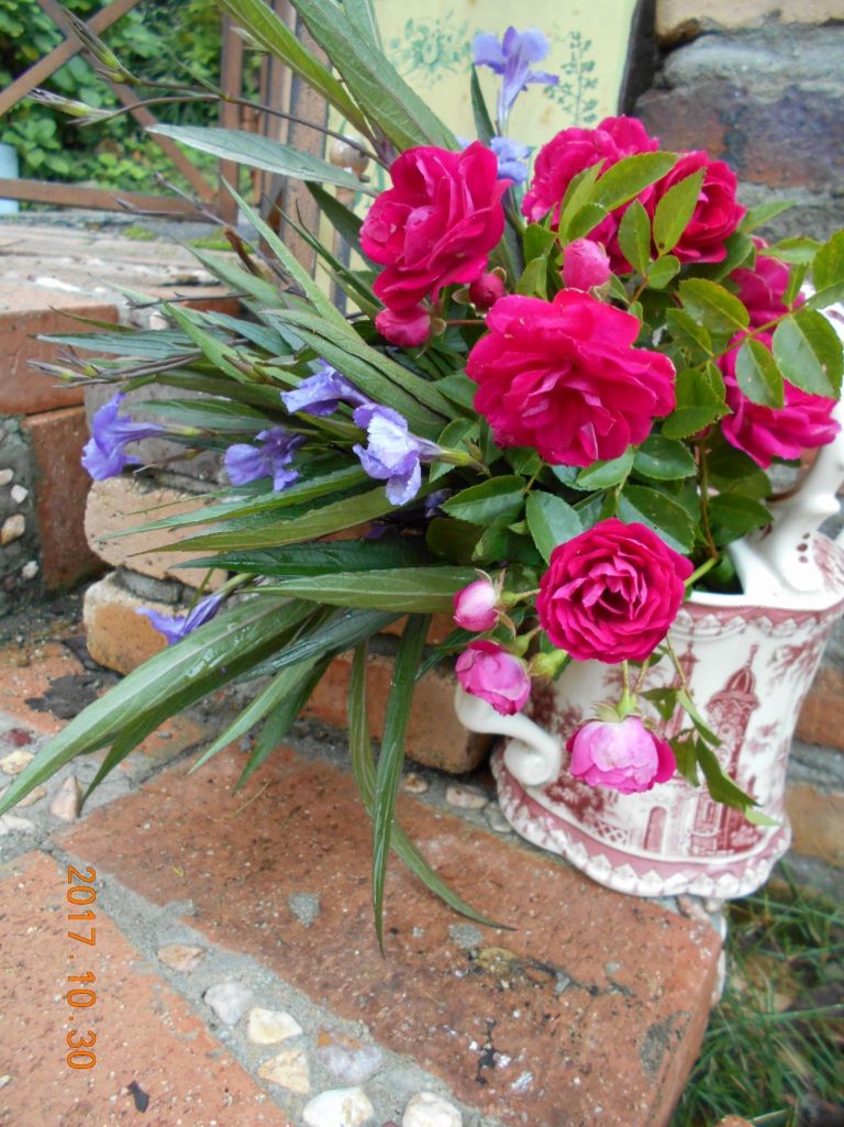 台風、被害はありませんでしたか??キングローズが色鮮やかで美しいですね。秋に返り咲きするのでしょうか??