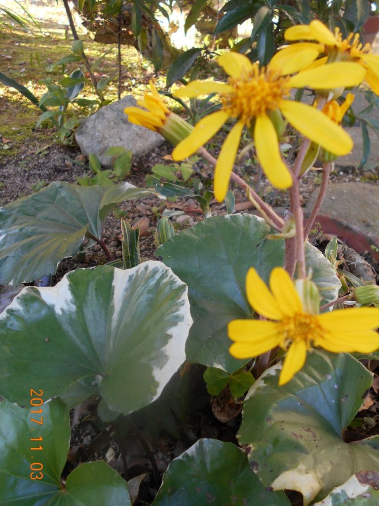 母屋のつわぶきは斑入り