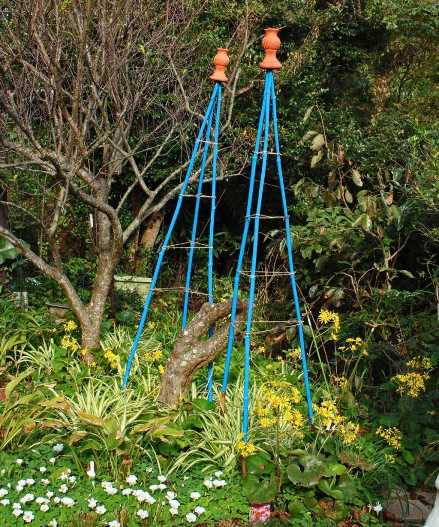 ブルーのオベリスクは竹なんですね!アイディアがいつも素敵です。これ真似していいですか?台風ももうこれで最後にしてほしいですね。