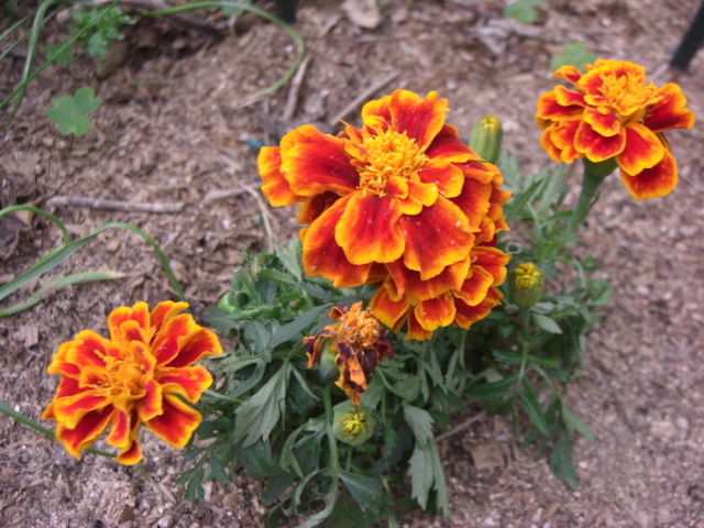 マリーゴールドバラの周りに植え付けていまますオーガニックガーデンの虫よけ