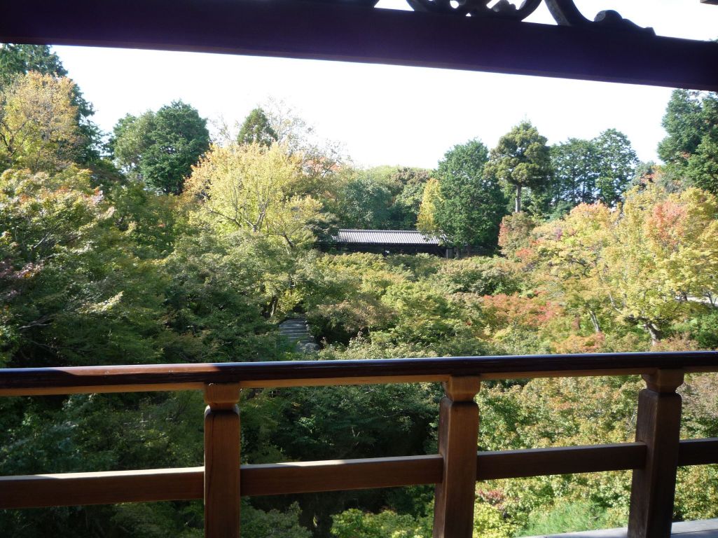 通天橋から見た景色はまだほとんど紅葉してませんが、これから12月頃までは紅葉で絶景が見られます。