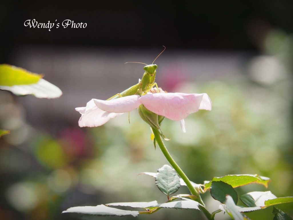 ワタシキレイ?この花は散ってしまったので、今日は別のバラの上にいます^^;よっぽどバラがすきなのね~笑