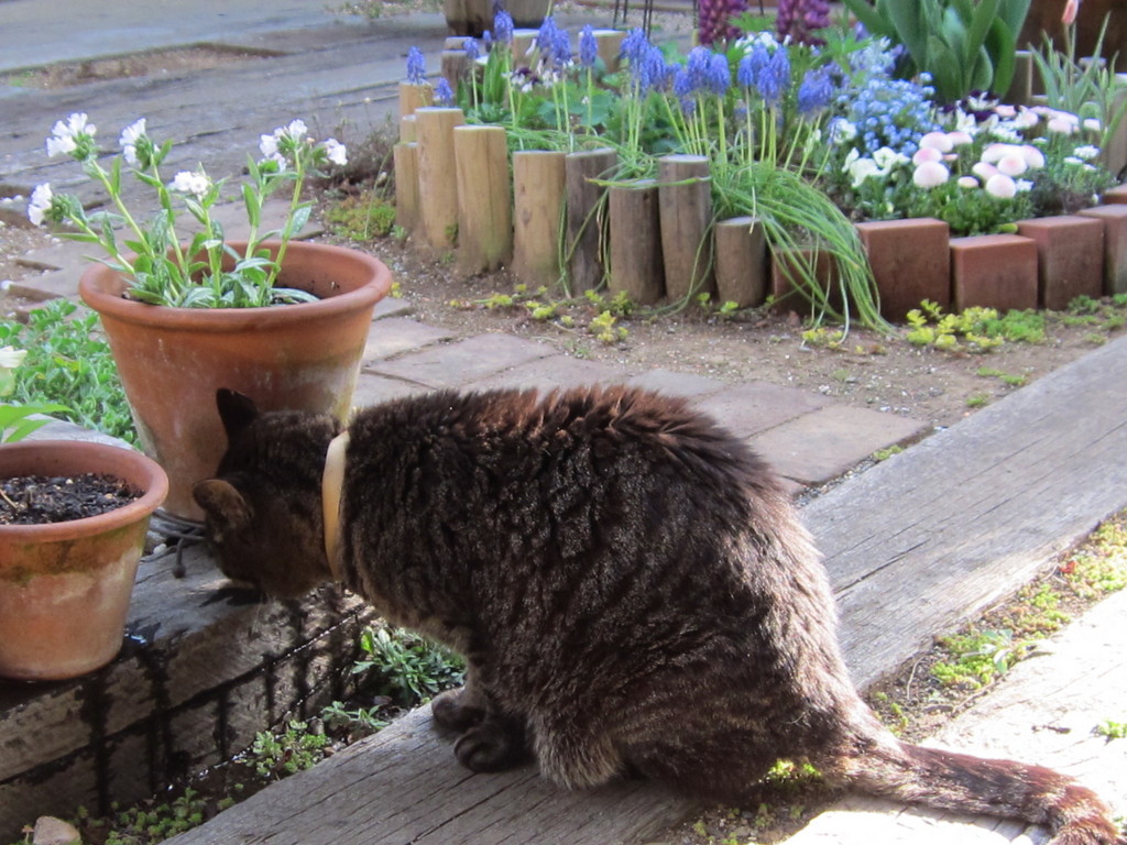 水やりしてると必ずやって来てお水を欲しがります。きれいな水酌んであげてるのに・・・こっちがいいそうです。