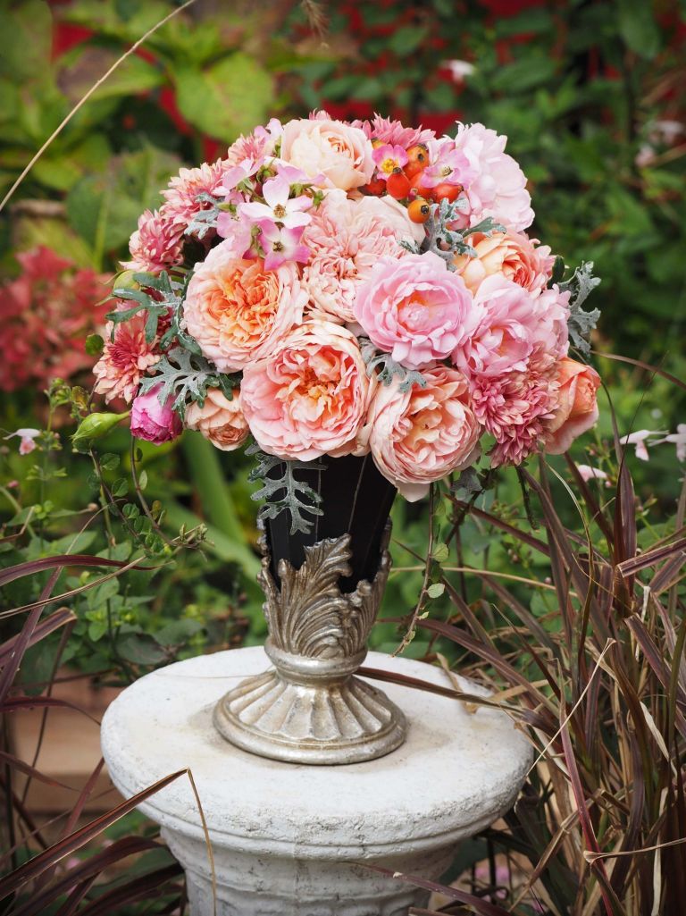 素敵なアレンジ、花瓶もとってもいいですね。私はこのお庭の草花の中の写真が好みです。